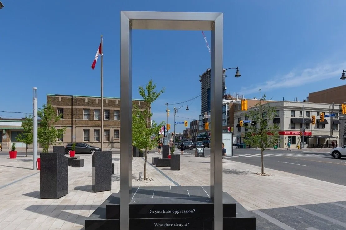 The quote on the gates is an excerpt from the Declaration of Independence of Upper Canada: